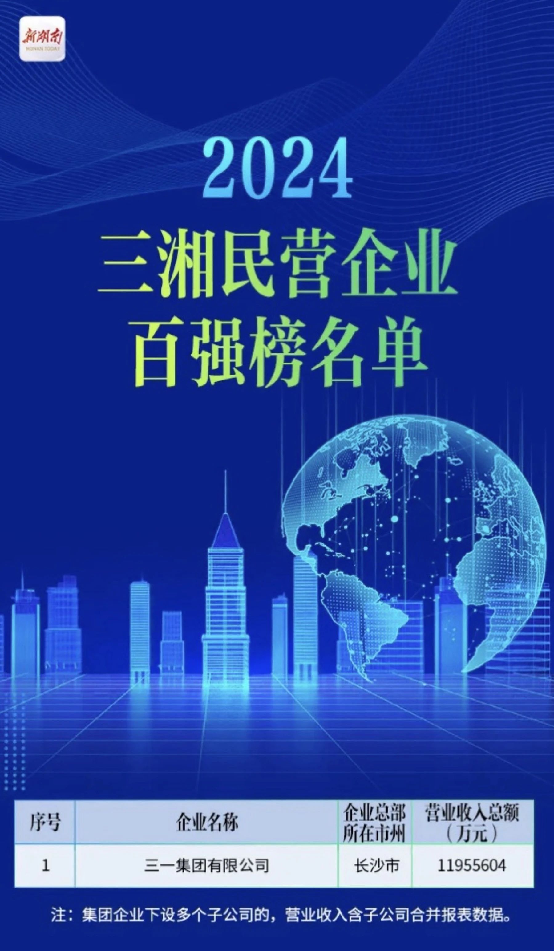作为榜单中唯一一家营收“过千亿”企业,凭借超1195亿元年营业收入总额,三一集团有限公司荣登百强榜榜首。这是2021年三湘民营企业百强榜正式设立以来,三一连续第四年位列榜单第一。
