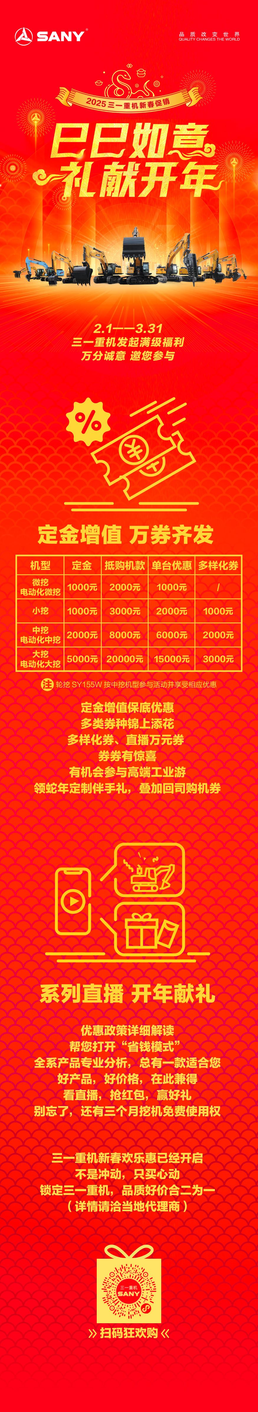 巳巳如意!新年添新机,三一重机满级福利迎新春!