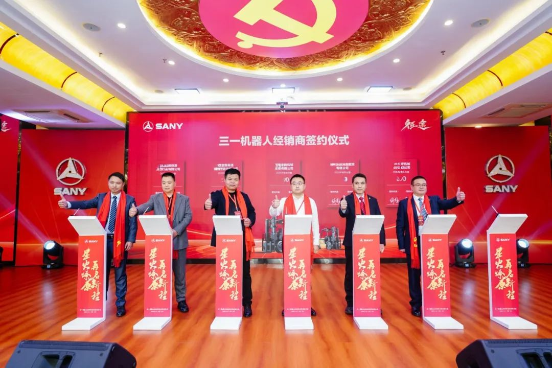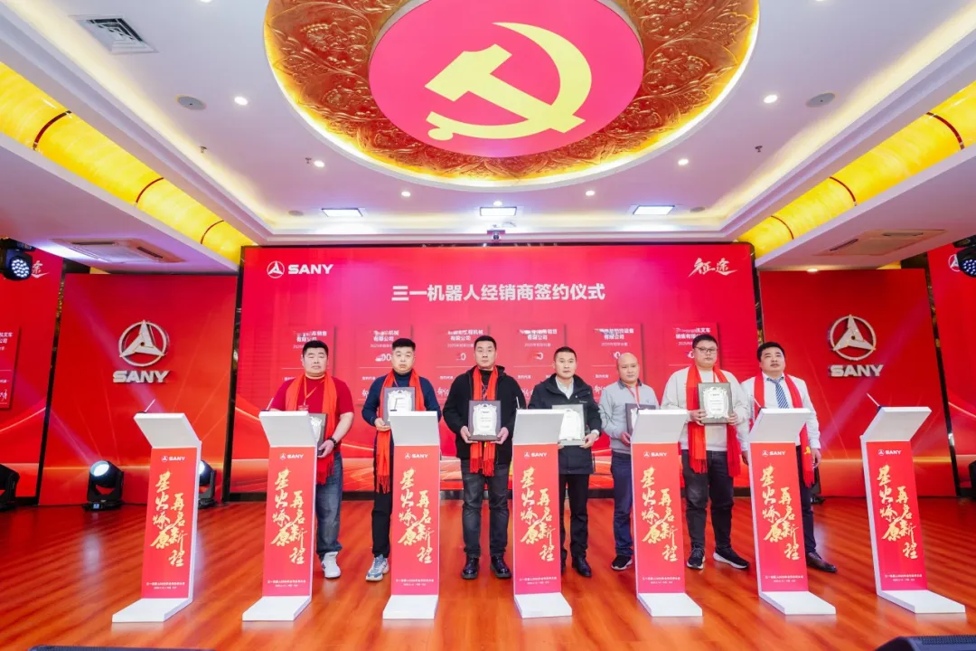 在经销商年度签约和授牌环节,三一机器人与省级经销商和授权经销商分别签订了2025年目标台量任务并颁发牌匾,在极具竞争力的创新产品、产品型谱不断完善、产能大幅提升等多重利好下,经销商们信心十足,为未来发展奠定了坚实基础。