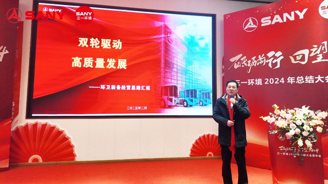 三一集团副总裁、三一环境总经理张树芳先生与同仁们分享2024年环卫工作的回顾及2025年的经营思路。在过去的一年里,在全体三一环卫共同努力下,国内市场取得了稳健的销售增长,海外市场实现了重大突破。2025年加强海外市场布局,双轮驱动,高质量发展。