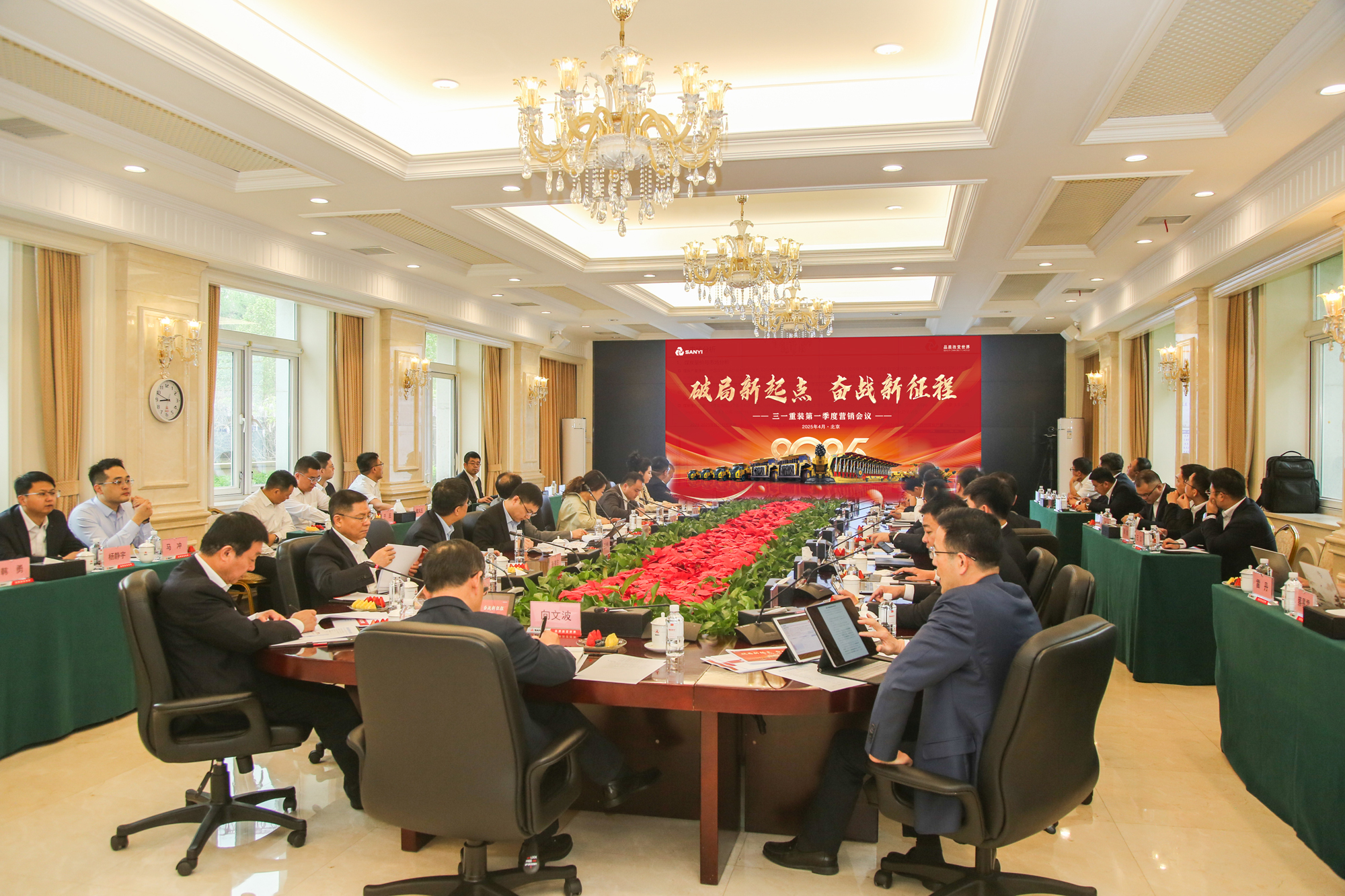 2025年4月21日,三一重装2025年一季度国内营销工作会议于北京回龙观园区圆满召开。三一集团党委书记、董事长向文波出席并主持会议,三一集团高级副总裁、营销赋能总部总监向儒安,三一集团董事、重装事业部董事长戚建、总经理张志宏、营销公司总经理孙郝等多位领导出席会议并听取工作报告,国内12家分公司相关负责人参加会议并汇报2025年一季度销售情况。