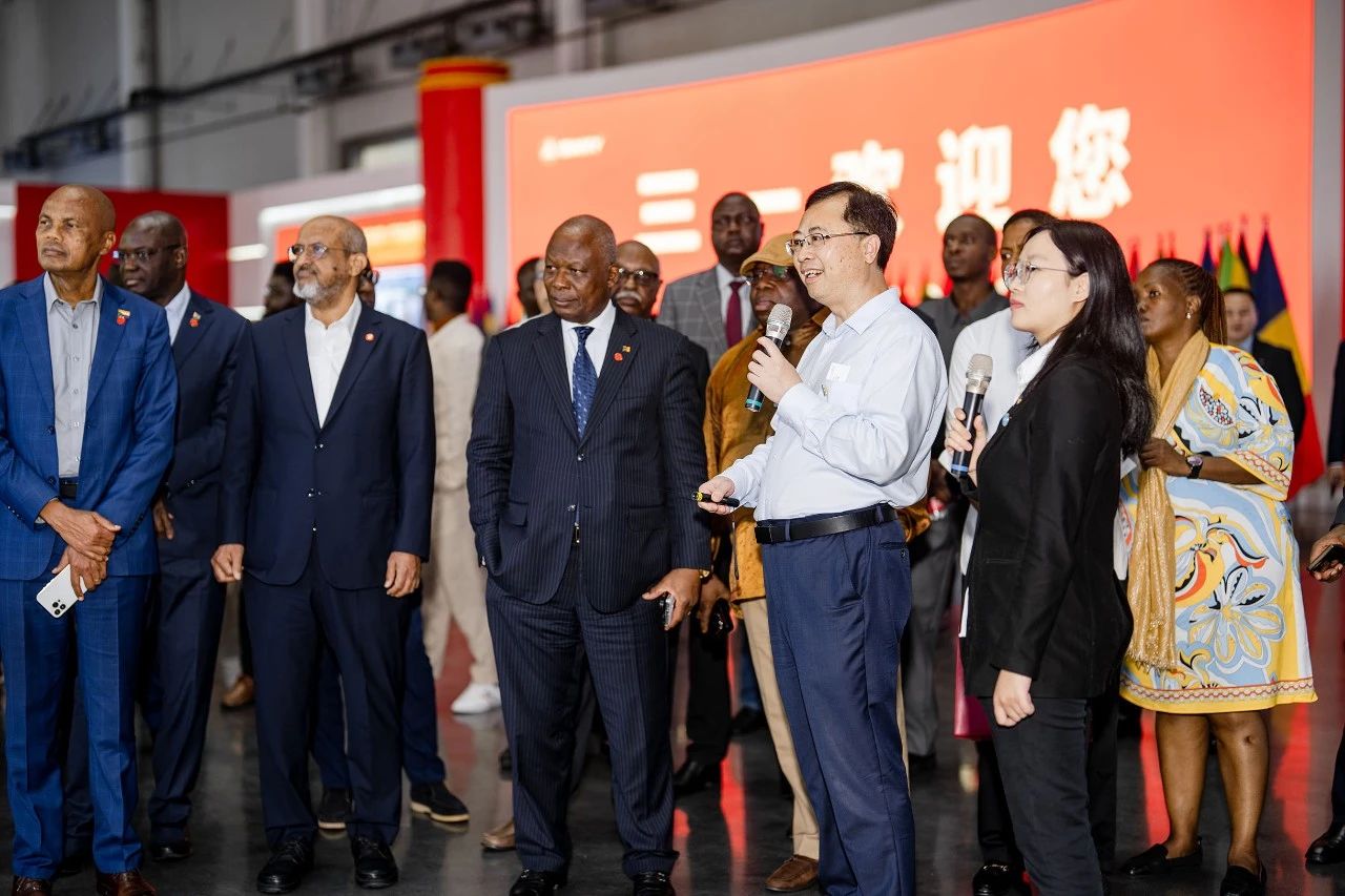在企业展厅,三一集团董事、三一硅能董事长代晴华热情接待了非洲驻华使节团一行。代晴华详细回顾了三一集团从乡镇企业跻身全球装备制造领军企业的发展脉络,并重点介绍了三一硅能在光伏全产业链的战略布局。使节团成员专注聆听,对三一集团的全球发展成就表示赞赏,并不时就三一在非洲市场的业务拓展情况深入问询。
