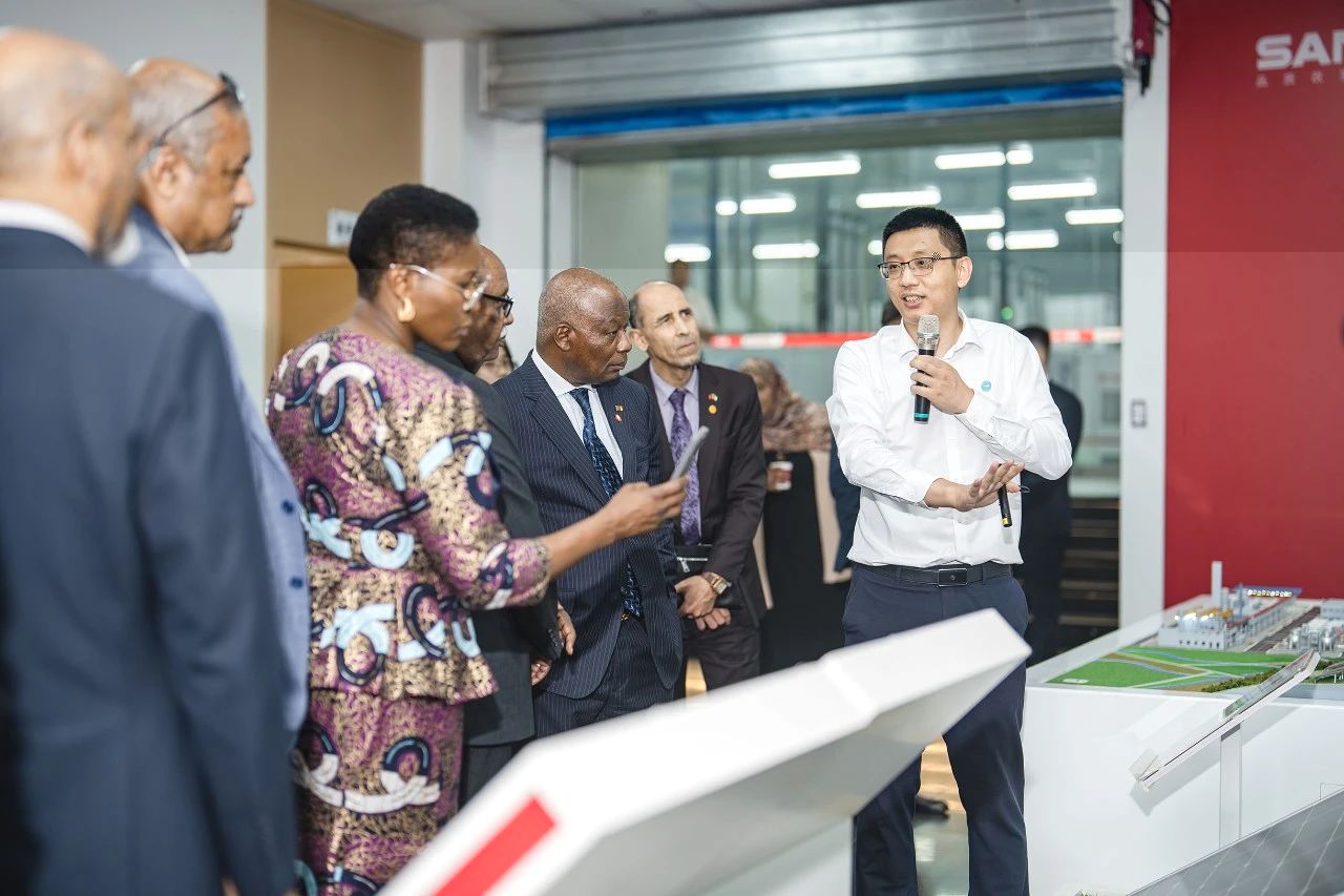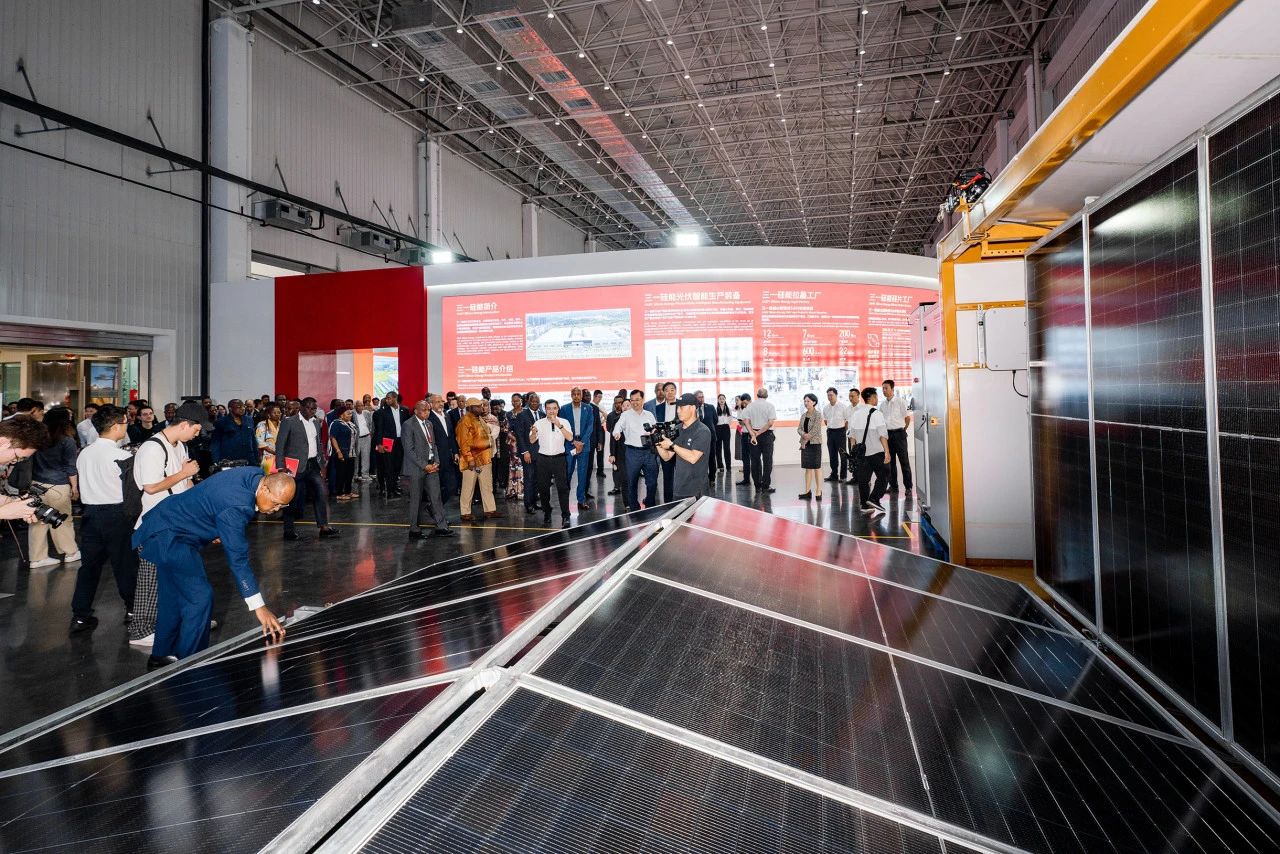 5月15日,由51个非洲国家和非洲联盟驻华代表处组成的非洲驻华使节团,到访三一硅能株洲光伏制造基地,围绕三一集团在光伏产业的技术研发、智能制造、产品应用及绿色可持续发展实践进行实地考察。