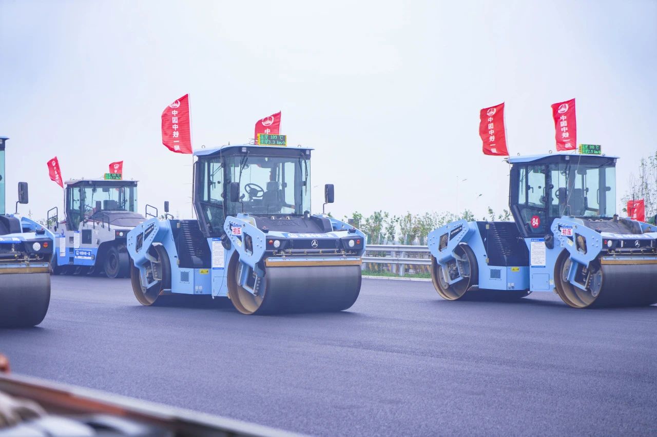 三一无人摊压机群在此次工程中创下: