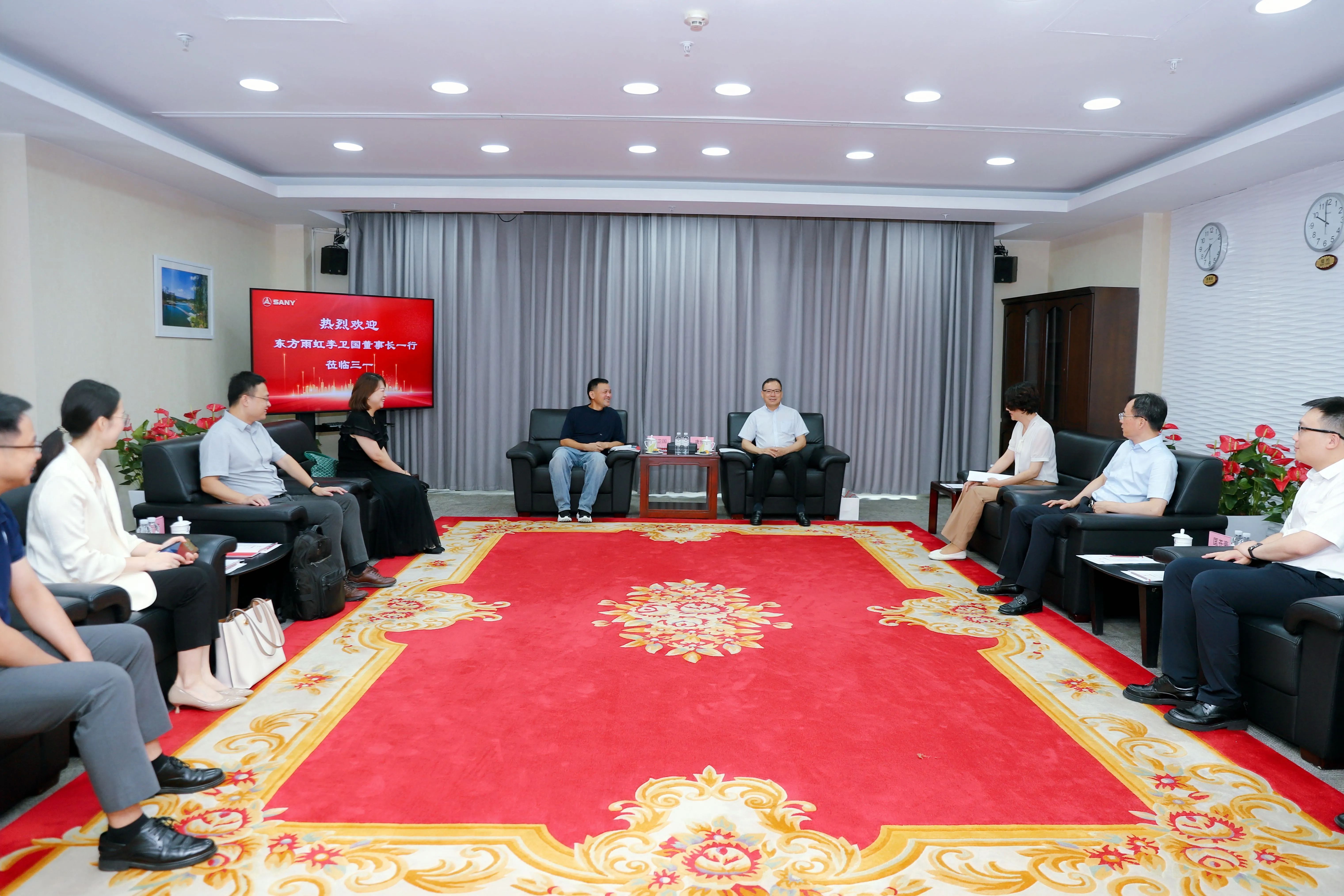 8月6日,东方雨虹集团董事长李卫国率高管团队到访三一集团长沙产业园,与三一集团董事长、总裁唐修国及核心管理团队举行战略会谈。双方围绕全球矿业市场协同开拓、建筑建材全链合作等领域深化全方位战略合作展开深入交流,并达成多项共识。