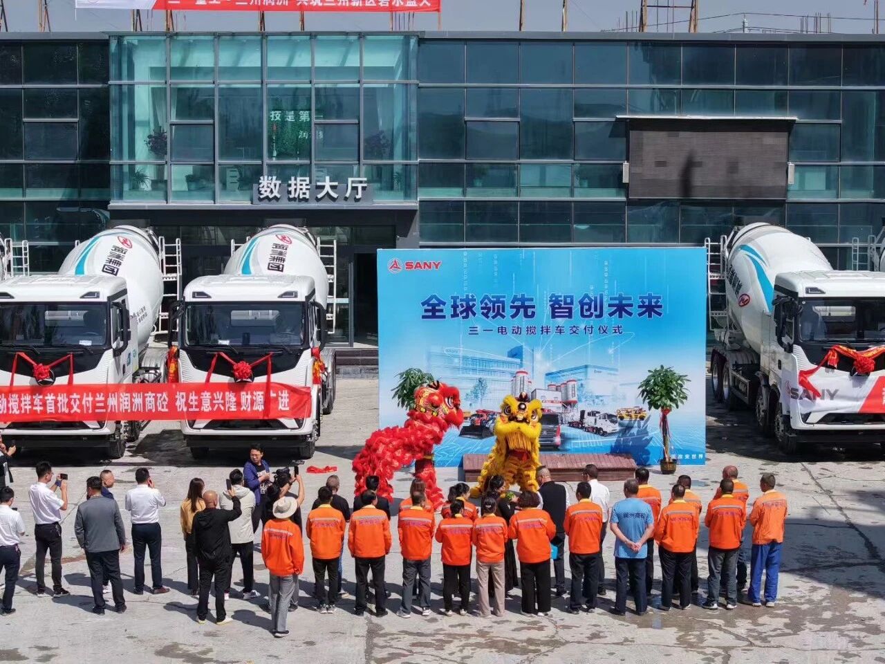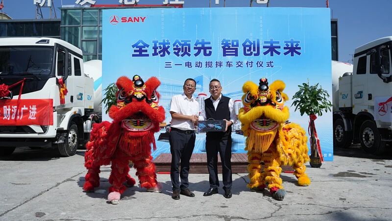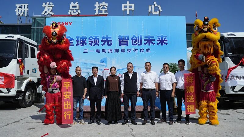 近日,三一电动搅拌车批量交付兰州润州集团。现场气氛热烈非凡,精彩的舞狮表演拉开活动序幕,众多嘉宾与行业同仁齐聚一堂,共同见证这一重要时刻。