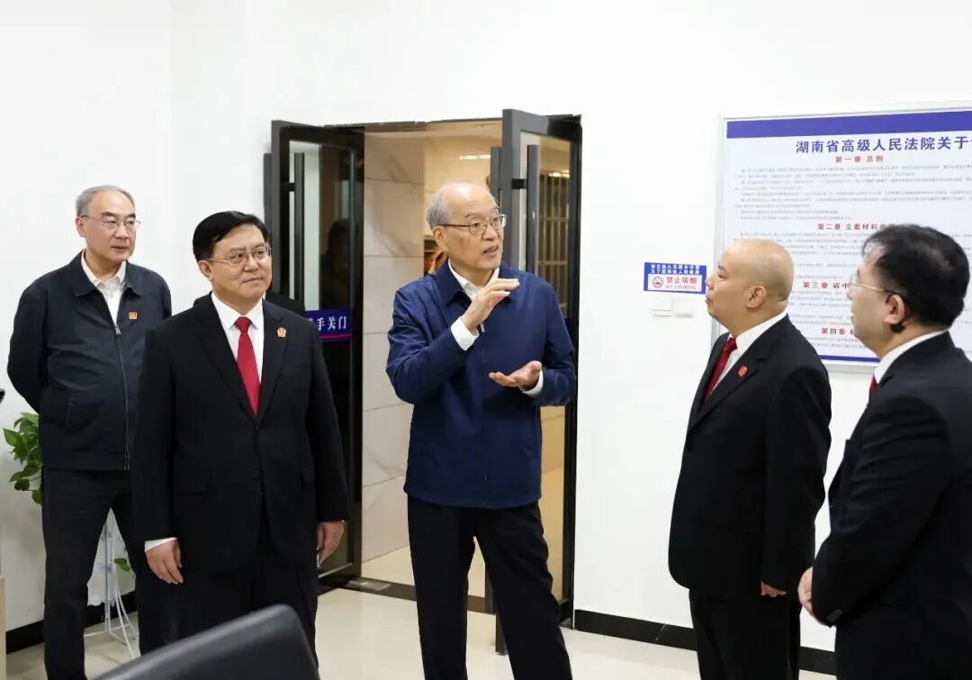 最高人民法院党组书记、院长张军率领调研组在湖南高院调研。