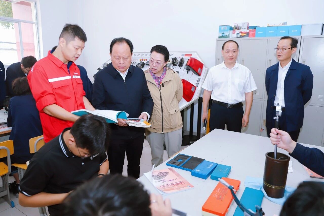 调研组一行深入三一智联重卡产业园和湖南三一工业职业技术学院(湖南三一工匠学院)。首先,调研组实地参观企业展厅和智能制造生产车间,了解企业发展历程、生产经营、成果转化等情况,感受湖南工程机械智能制造和科技创新活力。