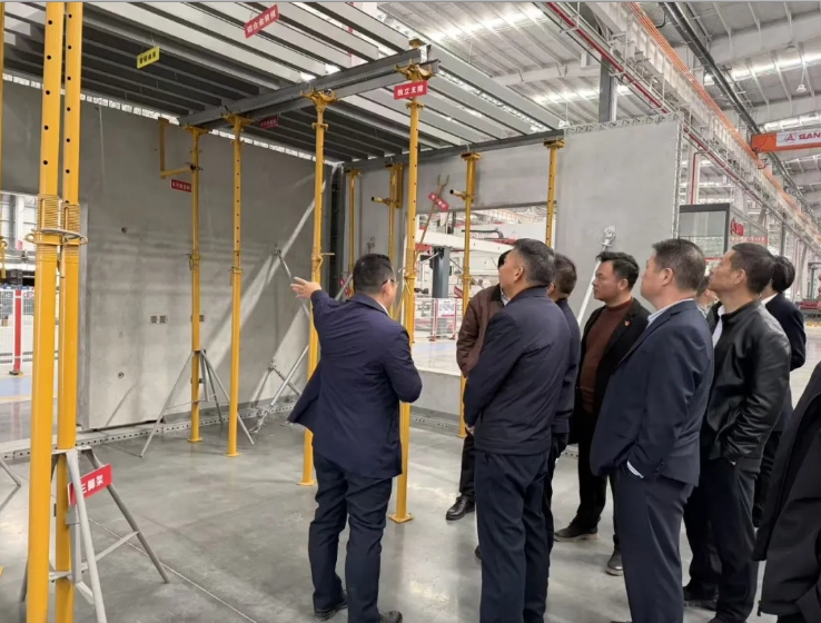 活动伊始,筑工汨罗产业园相关负责人陪同长沙市轨道交通集团考察团实地考察筑工汨罗工厂,详细介绍了三一筑工深耕装配式建筑行业的发展历程、核心优势,在智能建造领域的创新实践,以及产业园规划运营情况。随后,双方共同观看了三一集团及筑工专题宣传片。