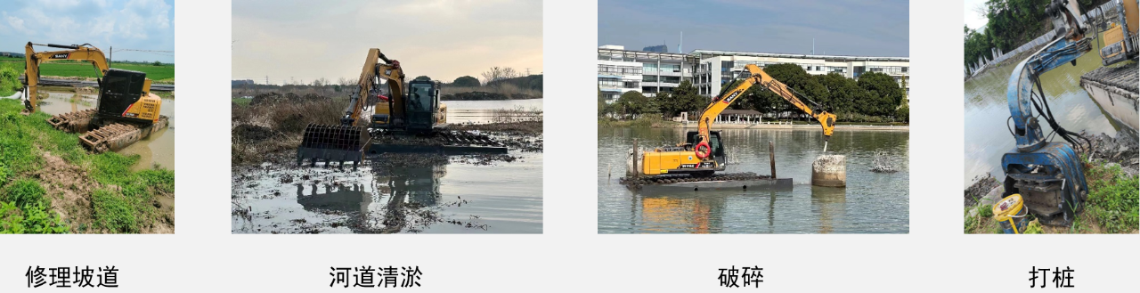 河道清淤、池塘整理、光伏电站打桩、滩涂开发……换上不同铲斗、抓斗,简直是个 “水上变形金刚”!