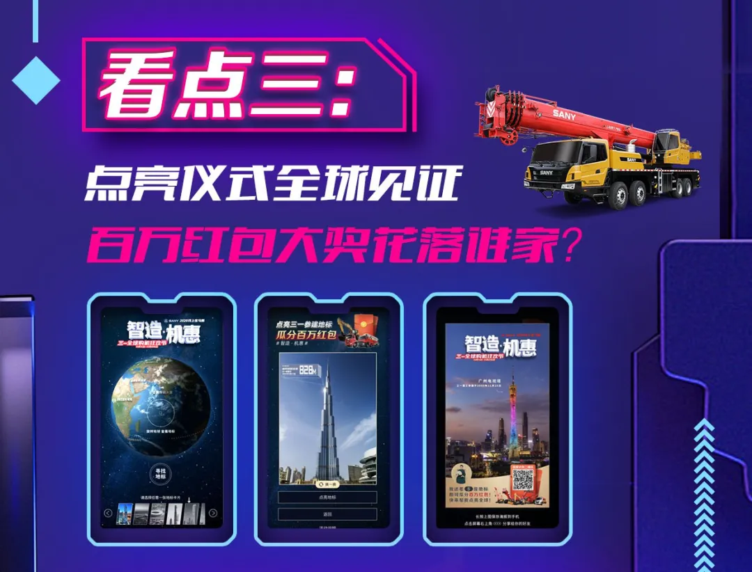 11月开始的“点亮全球三一参建地标”活动也将开启最终红包通道,百万红包齐瓜分,看直播一起见证中国力量的闪耀时刻!