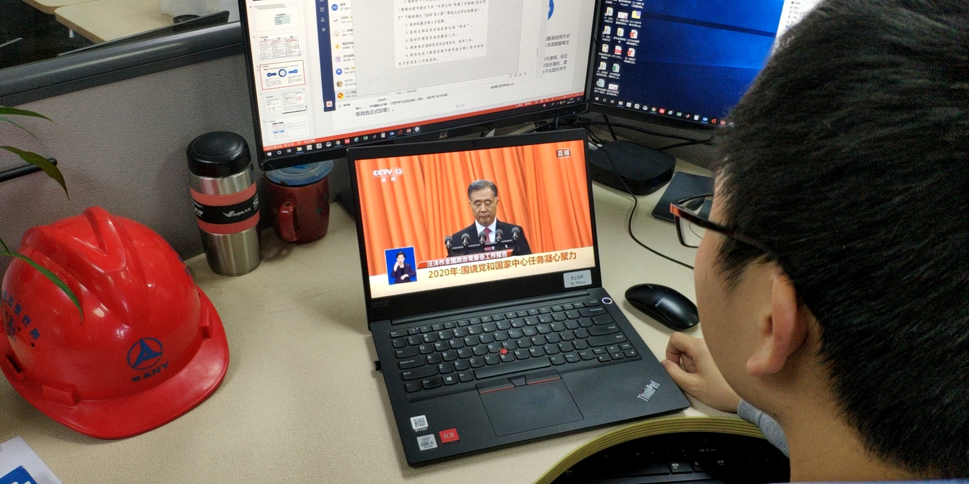 三一集团组织收看“两会”直播,人大代表梁稳根现场参会
