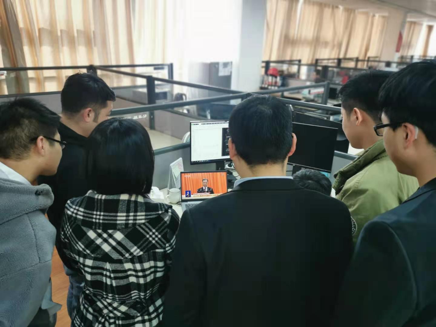 8点50分,长沙、南口、宁乡、娄底等三一集团各产业园的党员活动室早已坐满了人,不少身处生产一线的员工也利用间休时间,在移动端观看两会直播。