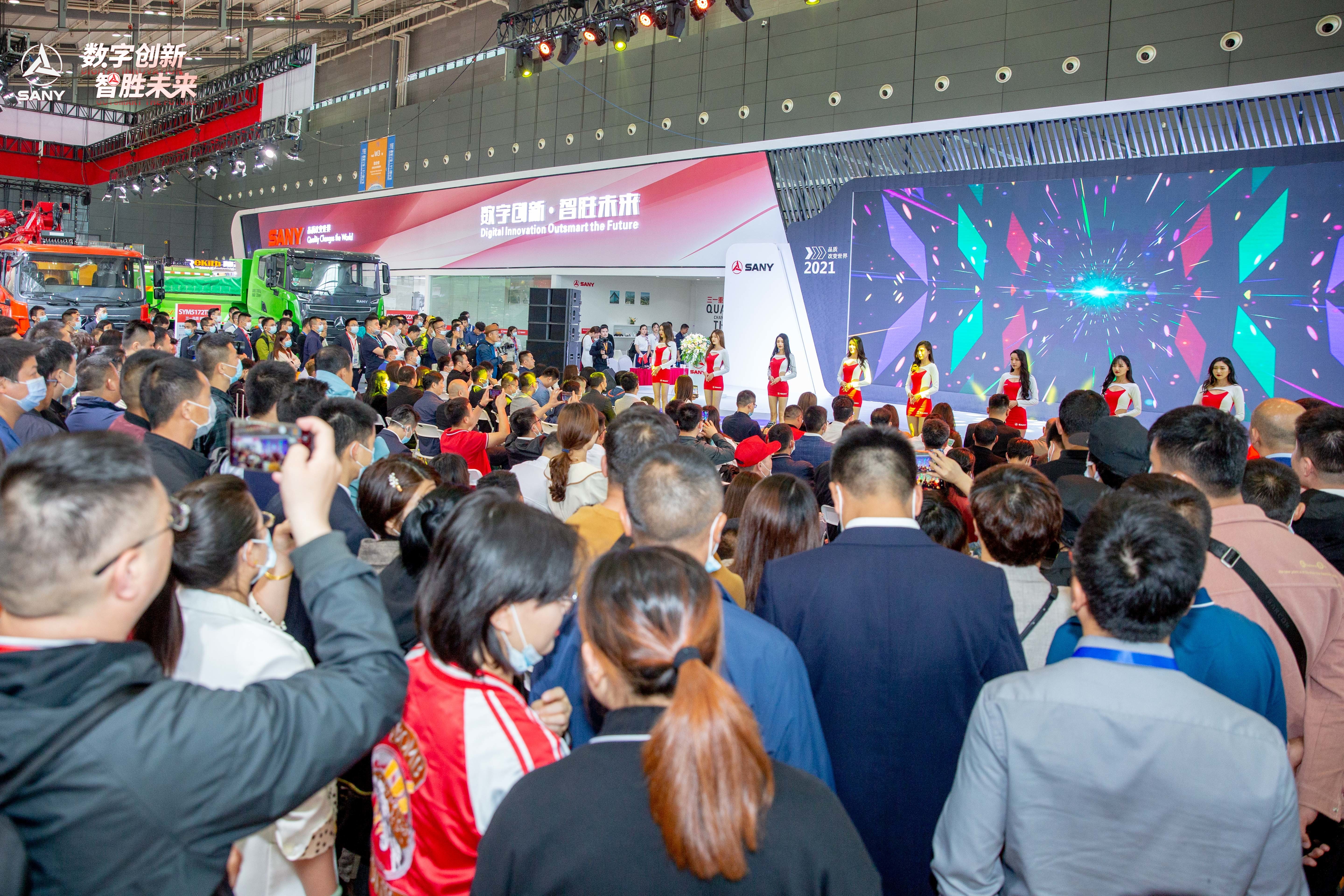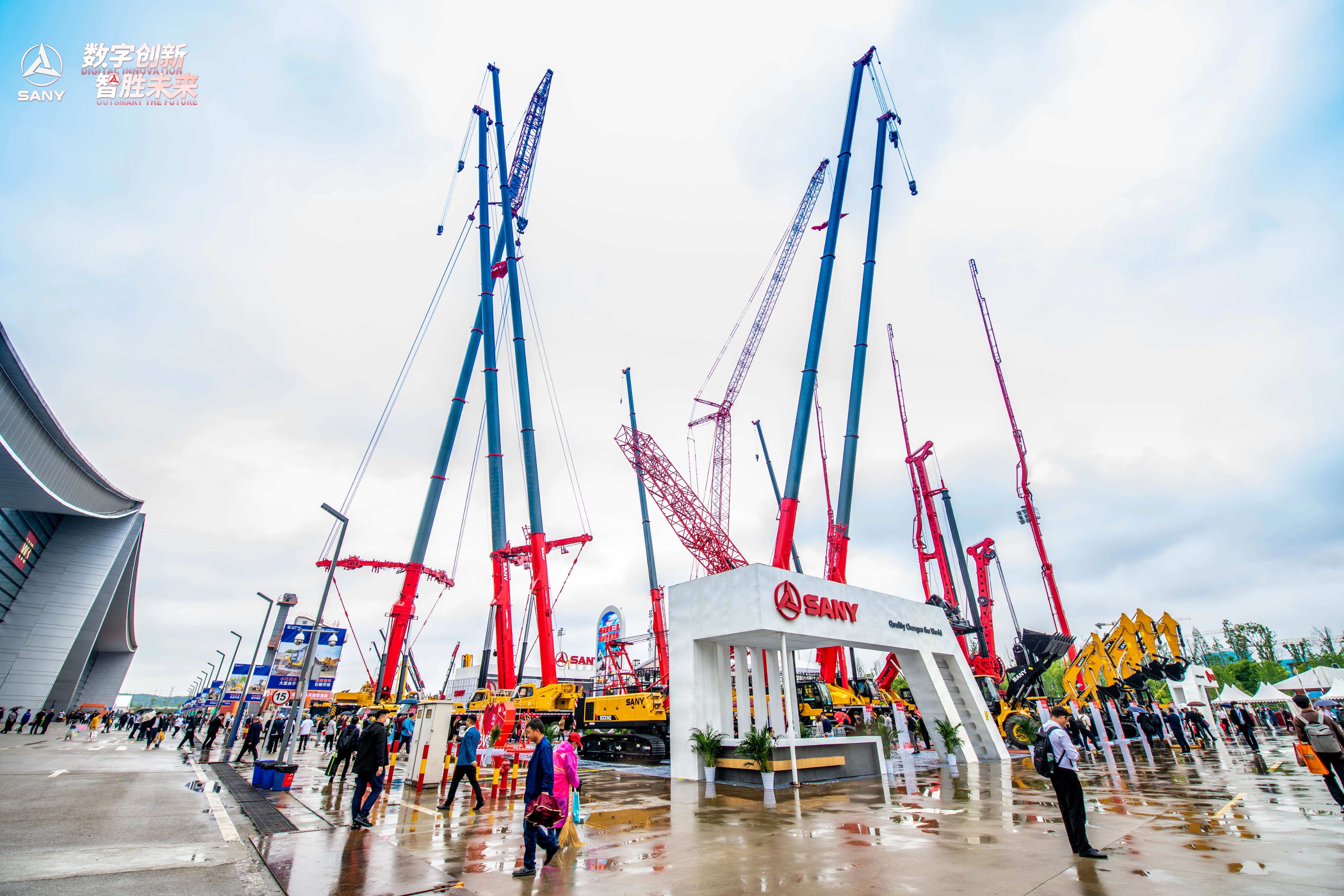 作为湖南培育的首家跻身《福布斯》全球500强企业,在这届“家门口”的盛会上,三一集团以“数字创新,智胜未来”为主题,携65款最新、最强的混凝土机械、挖掘机械、起重机械、桩工机械、应急装备等参展,以10465平方米的展会面积,蝉联“参展面积最大、设备最多”展商,向全球展现“工程机械湘军”的激情与魅力。