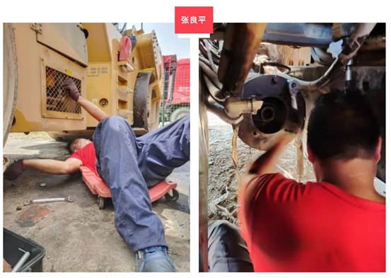 面对现场紧迫的需求,张良平没有慌张。他条理清晰地拆卸熨平板挡料板,拆卸振捣马达,拆卸右振捣装置总成。在现场没有冲压条件的情况下,通过巧妙的方法更换轴承。通过吊绳的方法复位前序拆卸的零部件,极大的降低了安装难度,设备恢复正常,客户连夜施工的计划顺利进行。