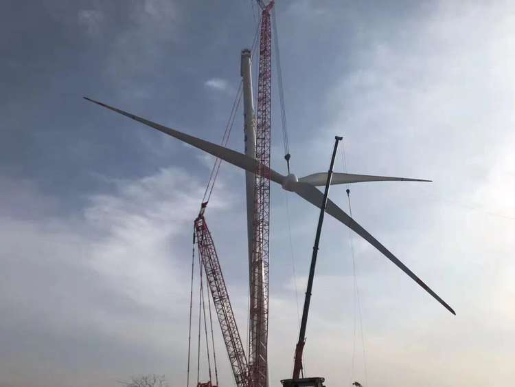 箱变上置,大大提高施工效率。该项目安装的是三一重能5MW箱变上置风电机组。在安装过程中,变压器上置机舱在风场安装的便捷性发挥重要作用。箱变上置机舱后,可以节省原来地面箱变的基础施工、安装成本和时间,同时由于动力电缆缩减至1根,风场的电装可缩短至1天时间内完成,将大幅缩短风场的施工周期。