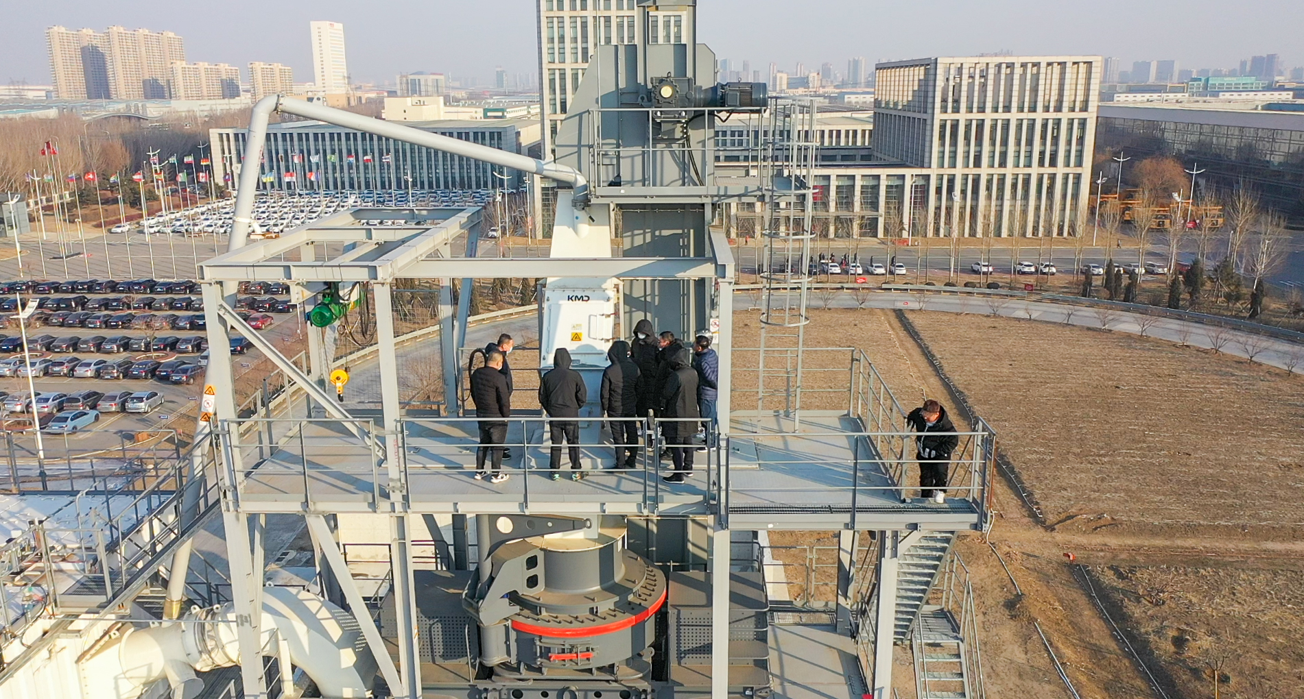 各位客户首先到室外场地对制砂楼产品进行了观摩。前沿的技术和精湛的设计,引起了在场客户极大的兴趣,现场同项目研发人员进行了详细的询问和深入的交流,并有许多客户登上20米高的制砂楼了解其结构细节。