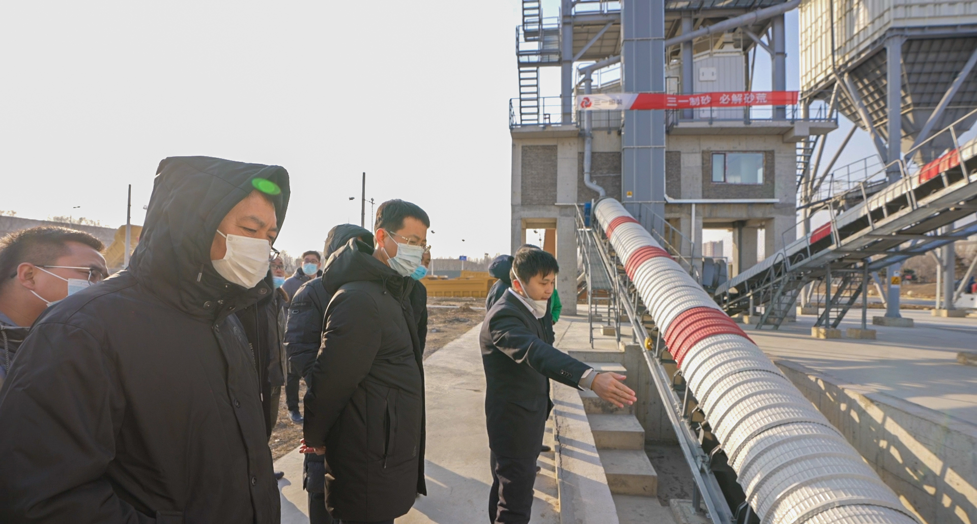 现场客户对三一C8系列制砂楼的设计和工艺表达了赞扬与肯定,三一制砂楼整体占地面积小,大气美观,同时工艺结构保证了良好的收尘效果,完全符合制砂环保审核标准,并表示后续采购或拓展制砂生产链时,将会优先选择三一制砂楼。