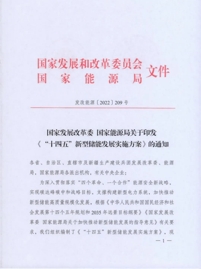中国风电新闻网讯:近日,国家能源局、发改委正式印发《“十四五”新型储能发展实施方案》,方案提出:到2025年,新型储能由商业化初期步入规模化发展阶段、具备大规模商业化应用条件。