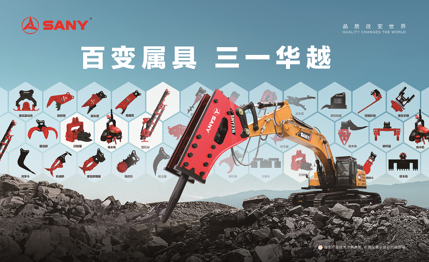 三一重机一直秉持"品质改变世界”的初心,连续十二年国内挖掘机市场占有率稳居第一,出口海外100多个国家和地区,实现产销量世界第一。属具方面,三一重机依托强大的人才、流程、技术等研发优势,通过属具与主机深度匹配设计和试验,打造属具细分领域“特长生”。
