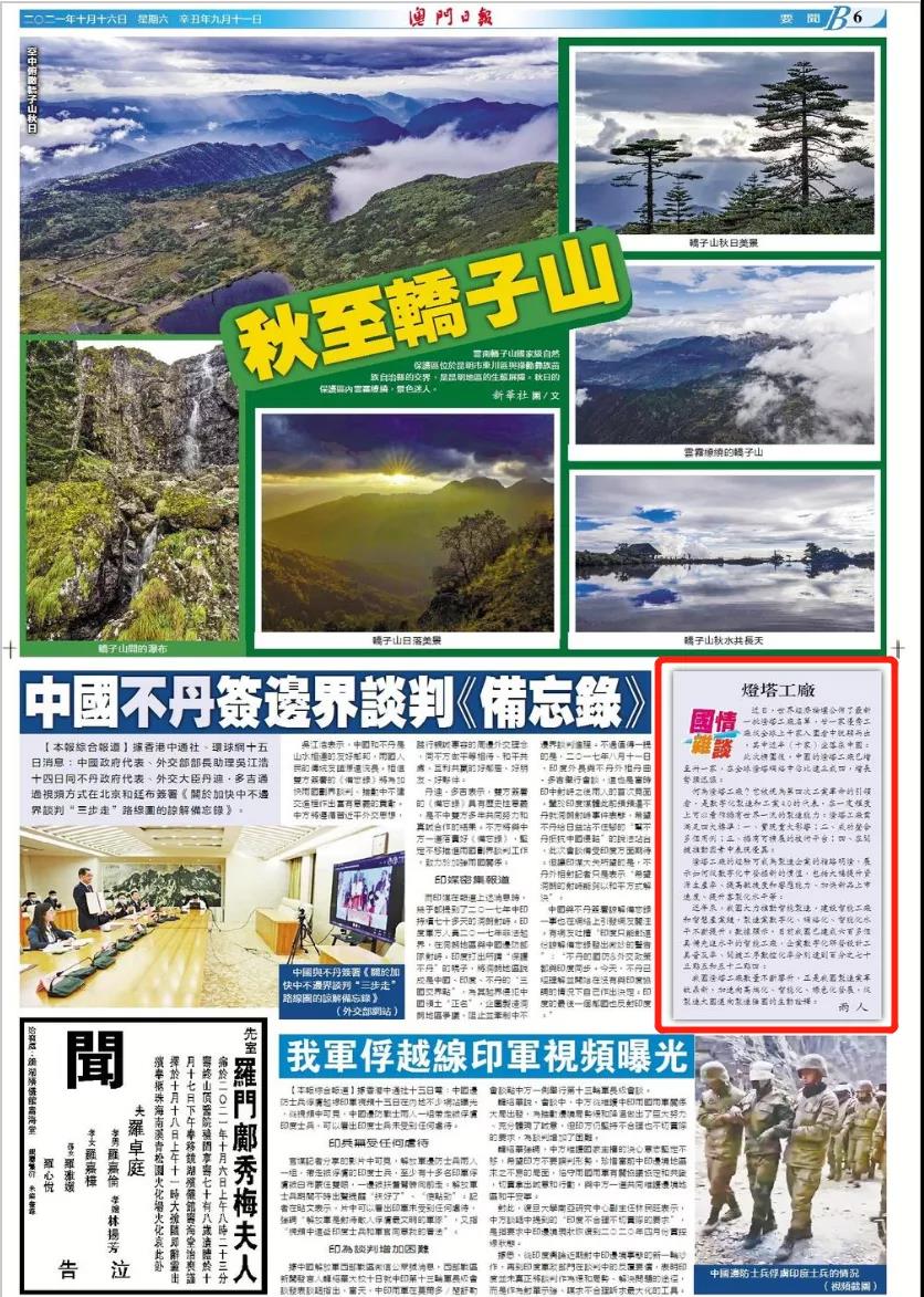 10月16日,澳门日报刊发文章《灯塔工厂》,对三一桩机工厂获评世界灯塔工厂给予报道,报道全文如下: