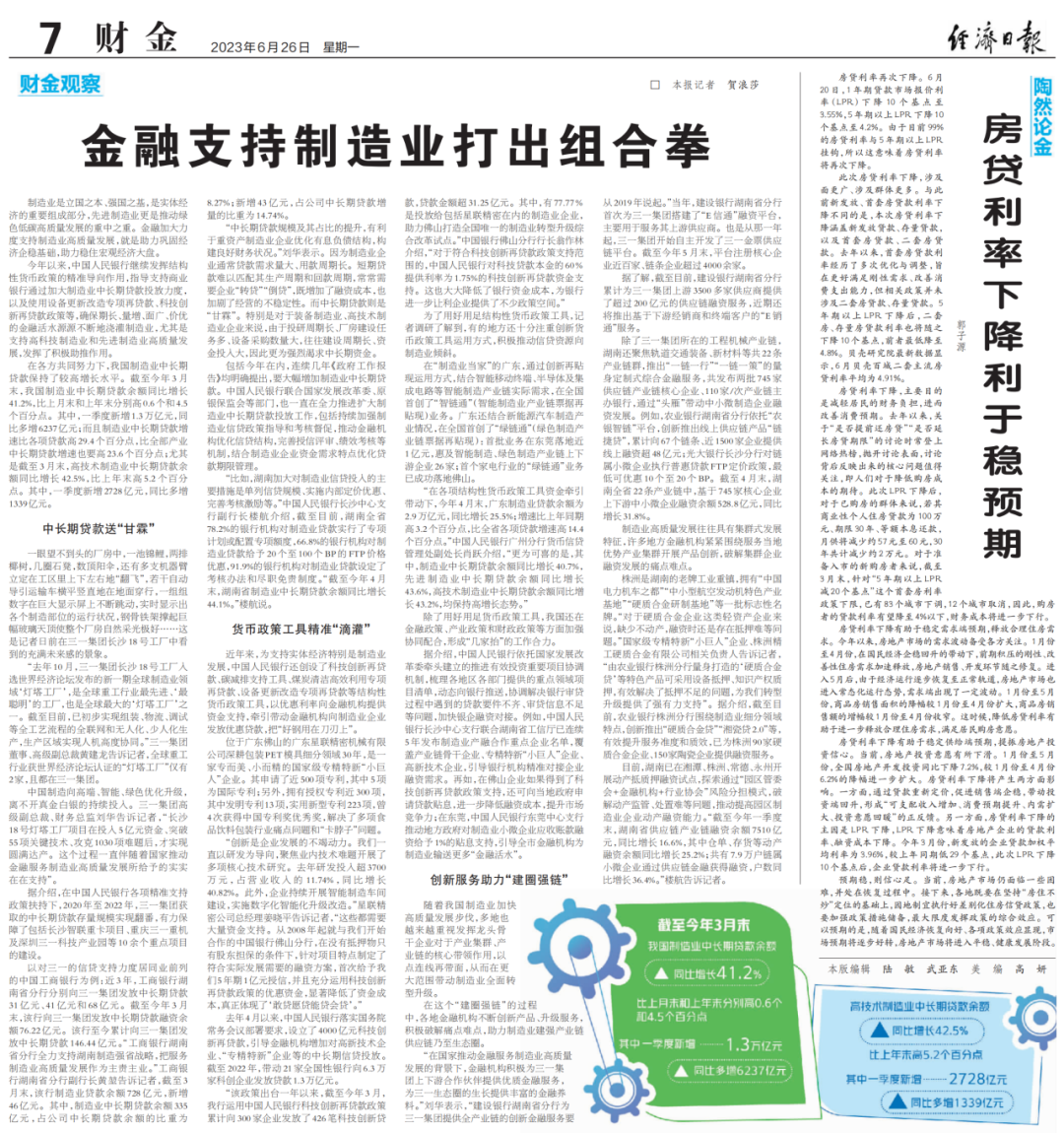 金融精准滴灌湖南先进制造业