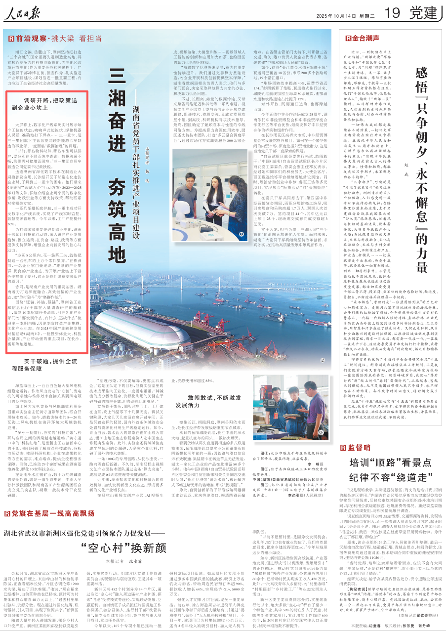 为打造国家重要先进制造业高地,湖南干部紧盯科技前沿动态、深入研究产业发展趋势,因企施策,在资金、路径、政策等方面提供支持保障,增强企业向新发展的信心与动力。