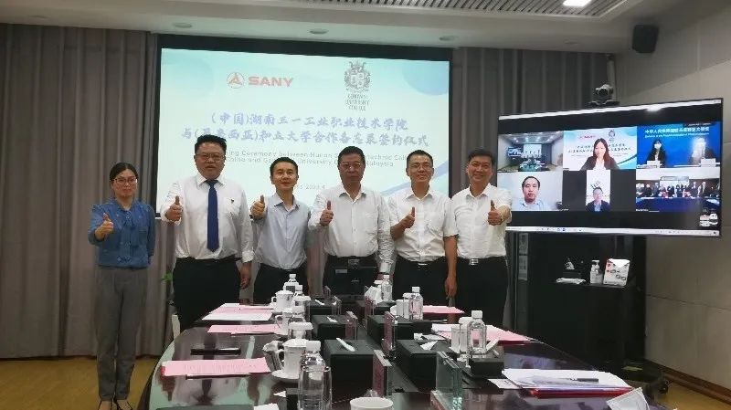 近日,湖南三一工业职业技术学院(以下简称三一工学院)与马来西亚和立大学举行共建培训基地项目“云签约”仪式。马来西亚总理府东亚特使、拿督斯里查理德里奥,马来西亚和立大学主席倪郑立,中国驻马来西亚大使馆一等秘书冯军等出席签约仪式。