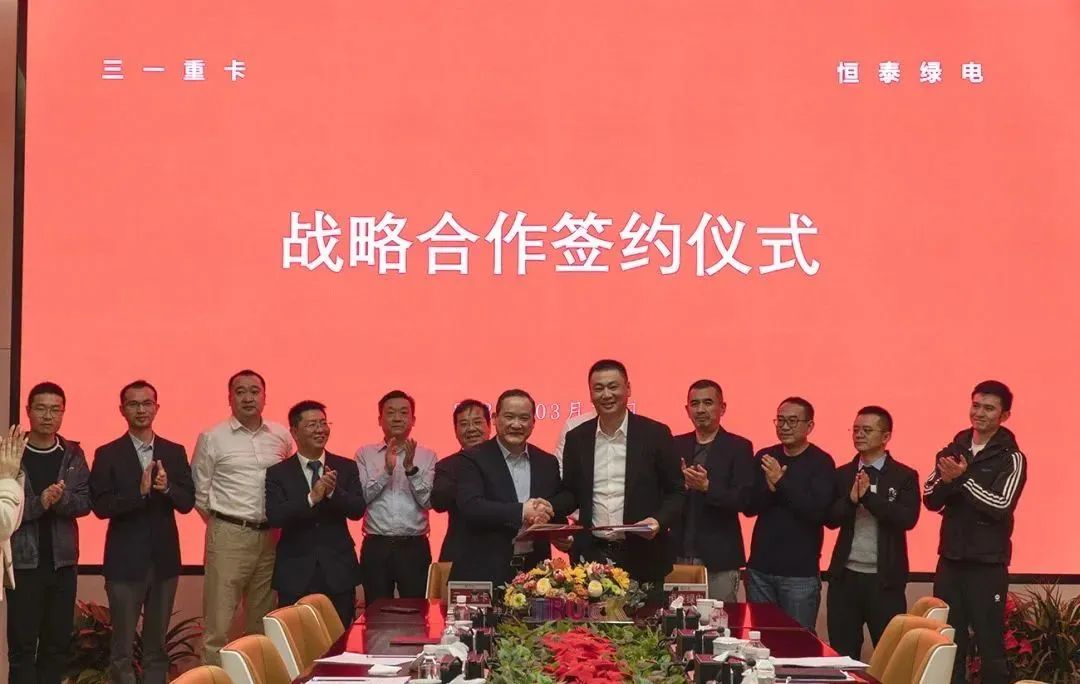 近日,新疆恒泰绿电新能源控股有限公司(以下简称“恒泰绿电”)与三一重卡签署1000台三一新能源重卡采购协议。恒泰绿电董事长陈伟、总经理姜磊,三一重卡董事长梁林河、副总经理周万春等出席签约仪式。