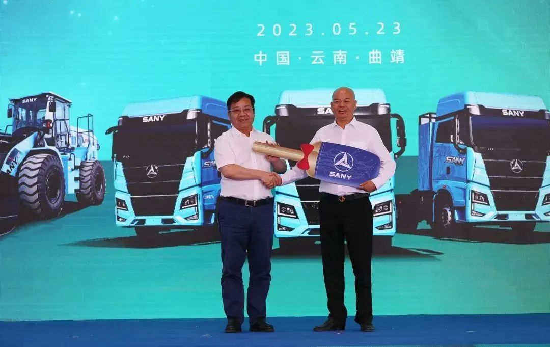 在现场数百名来宾见证下,首批三一电动化设备正式交付滇中好运,上百台换电重卡正式驶入三一智能充换电站,投入运输作业中。