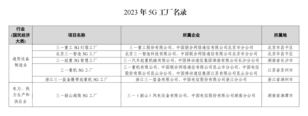 近日,工业和信息化部印发《2023年5G工厂名录》,三一6个5G工厂项目入选,上榜数量行业第一,在全国范围内同样遥遥领先。