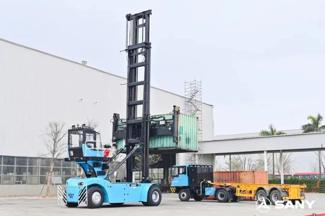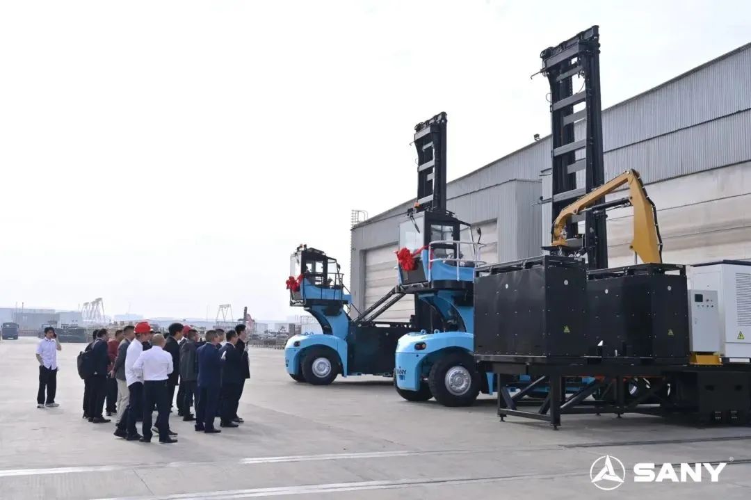 三一通过不同类型客户的工况来定义不同的产品,全面覆盖纯电、增程、换电三大技术路线,并结合码头复杂工况,开发了行业首款换电小车、小型自动充换电站,满足客户直达作业现场,8分钟快速换电的需求。
