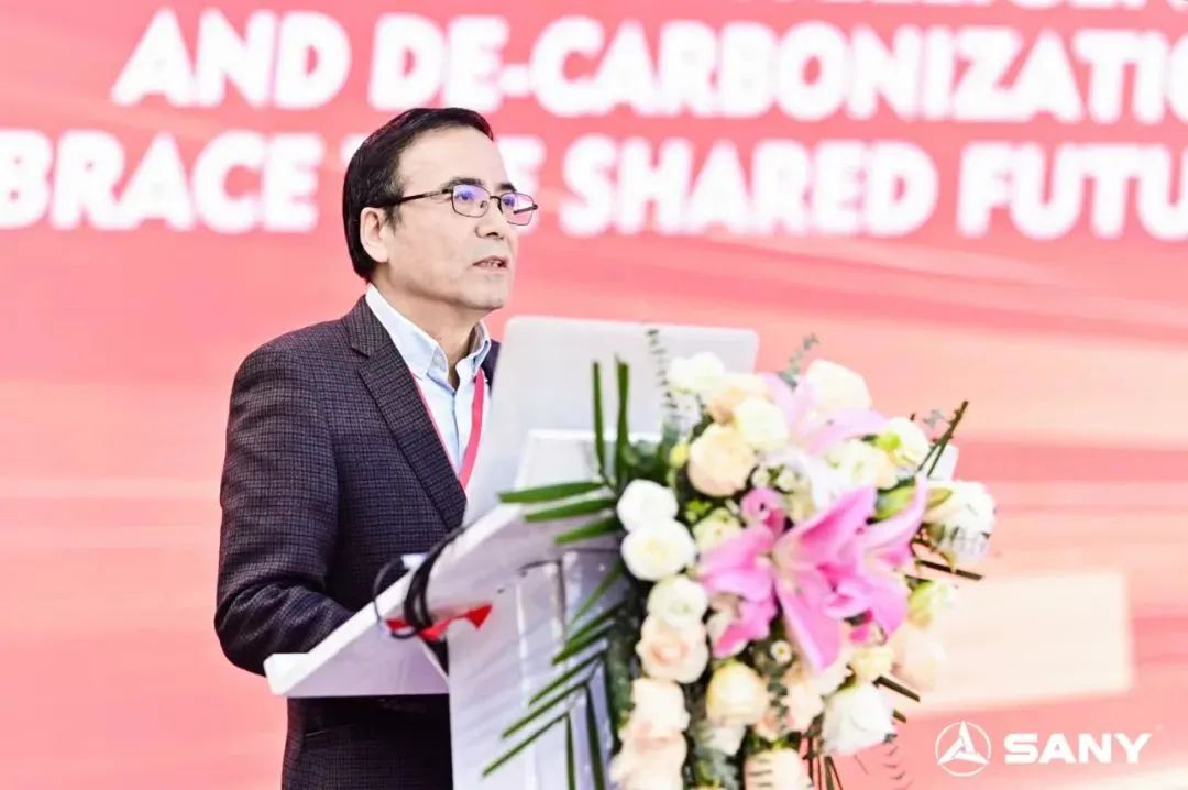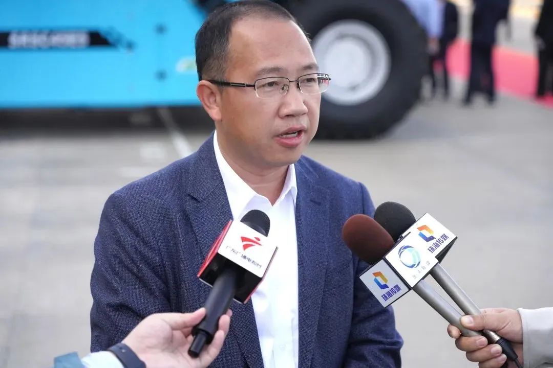 中国港口协会集装箱分会秘书长张如星在发布会致辞,表示三一从2018年开始推进产品的电动化,推动了行业发展,协会将进一步打造互联互通的平台,赋能企业共同推进绿色低碳港口的建设。