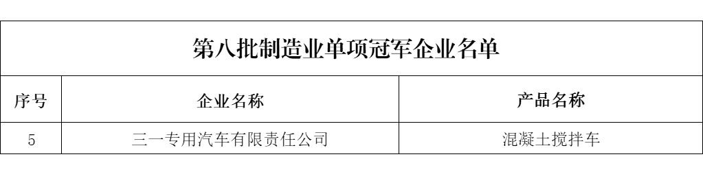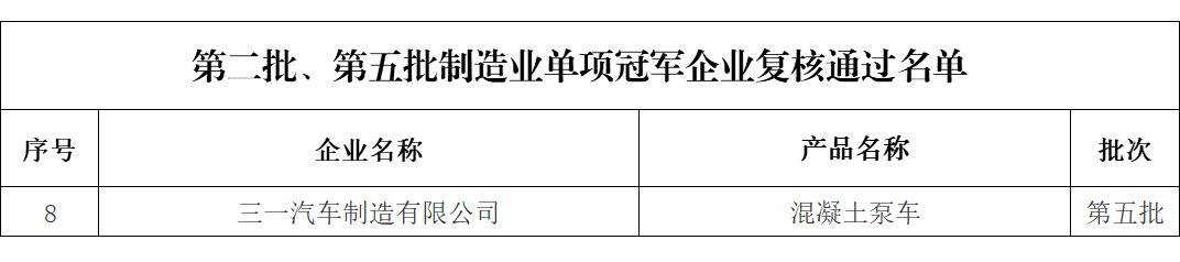 近日,工业和信息化部公布了第八批制造业单项冠军企业和通过复核的第二批、第五批制造业单项冠军企业名单。三一专汽生产的混凝土搅拌车成功上榜,三一汽车生产的混凝土泵车通过复核。
