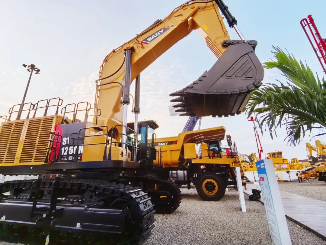 作为最大展商之一,三一展示了装备中的“顶级流量”——SY1250H,该款设备是三一在大型挖掘机领域倾力打造的全新一代矿山挖掘机,自重120吨,最大挖掘高度12.7米,最大挖掘深度8米,最大爬坡能力达35°,它吸引了来自全球的制造商、供应商、采购商和观众的眼光。