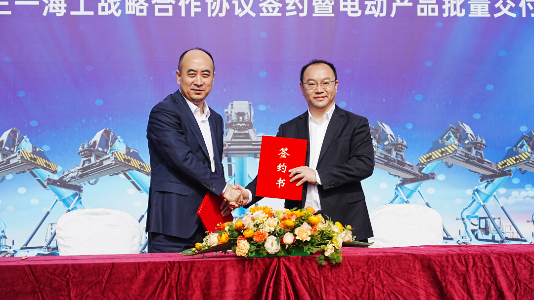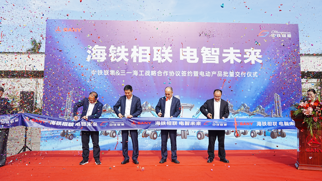 11月28日,三一海工与中铁联集在三一珠海产业园举行战略合作协议签约暨电动产品批量交付仪式。