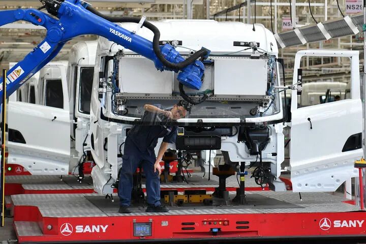 这是2025年8月20日在湖南长沙拍摄的三一重卡智能制造车间。新华社记者 陈振海 摄