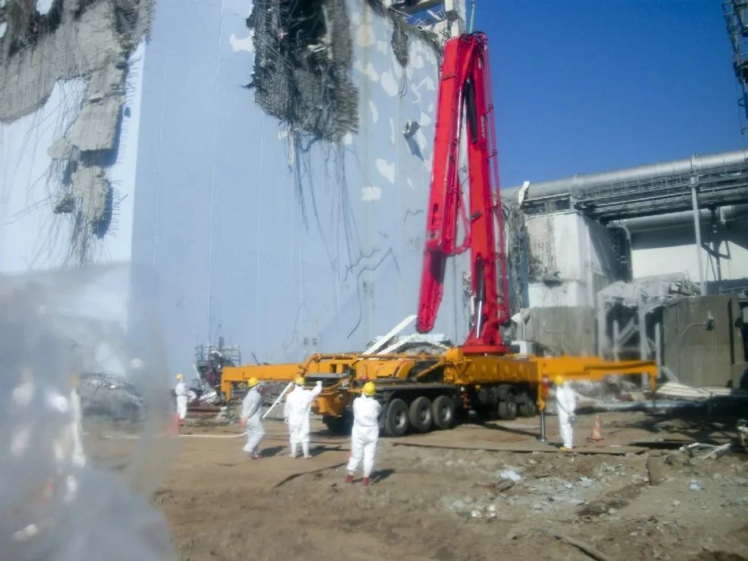 3月27日12时45分,62米泵车抵达福岛核电站指挥中心。3月31日12点,三一泵车正式开始为福岛核电站1号机组注水降温。第一次注水之后,反应堆的温度就明显下降。社会各界绷紧的神经也逐渐放松下来。
