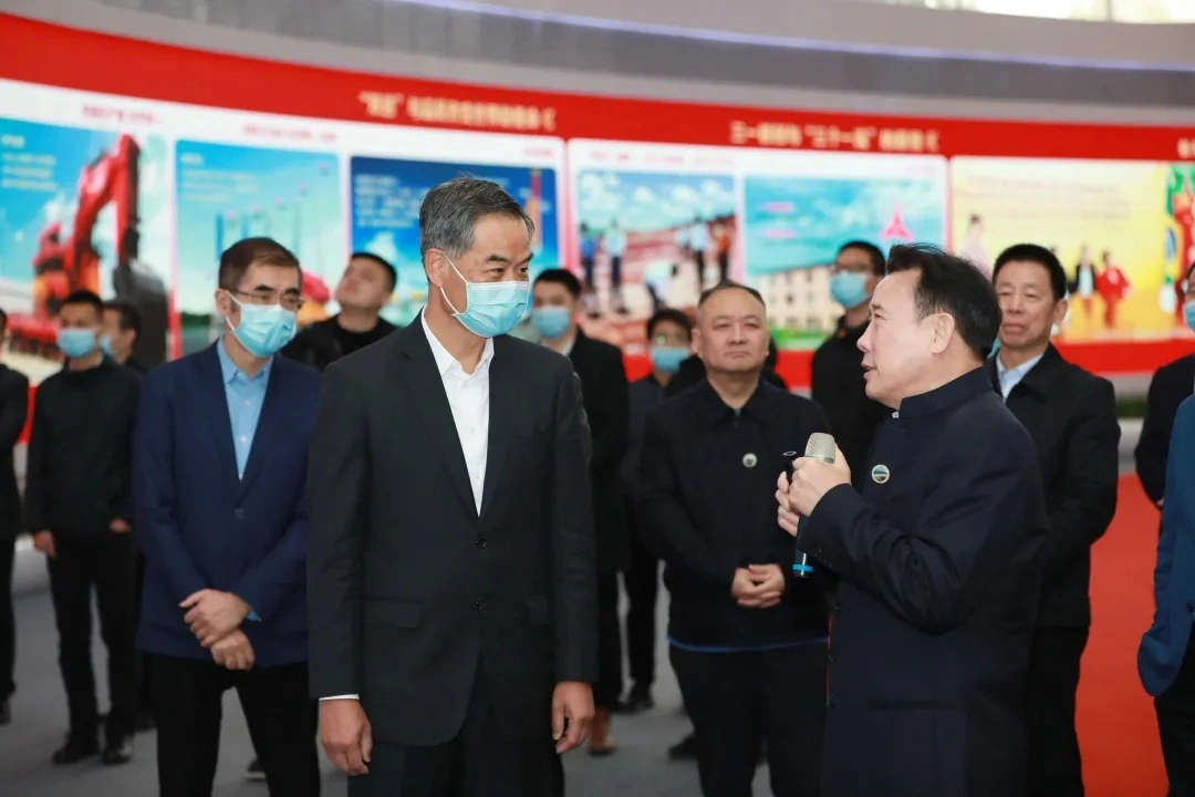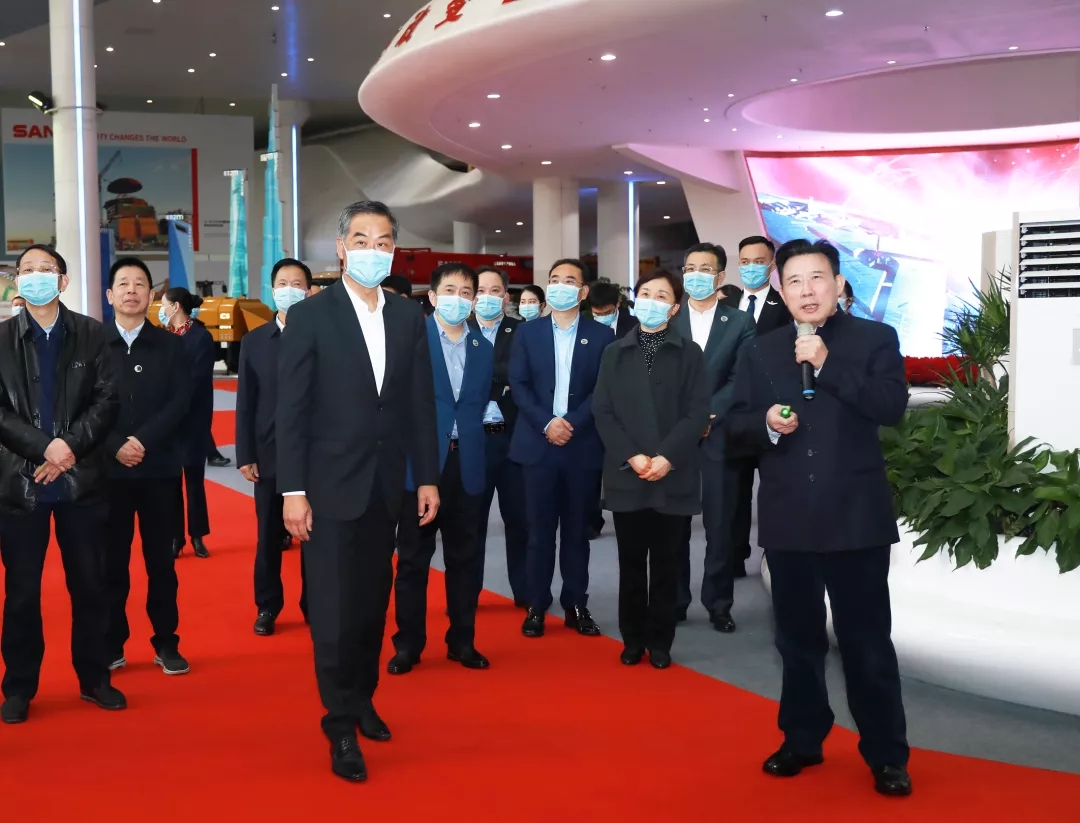 梁稳根对梁振英的莅临表示欢迎,在企业展厅,梁稳根向梁振英全面介绍三一集团的创业与发展历程,并着重汇报了近年来三一在“数字化、国际化”战略转型上的规划。