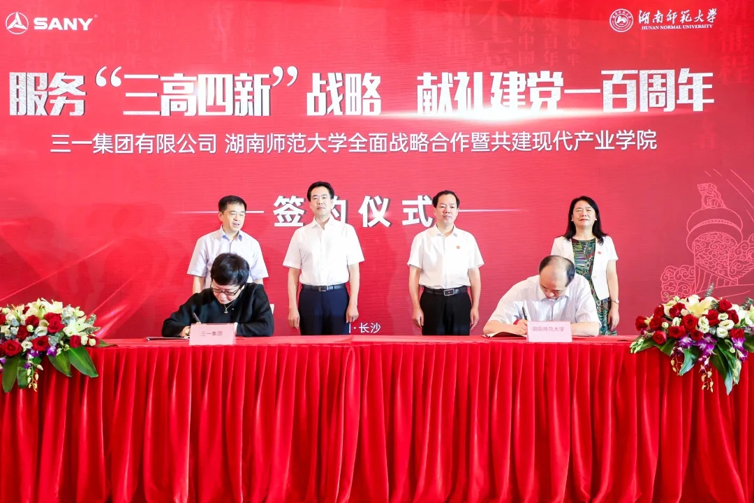 此外,三一集团还与湖南师范大学签订全面战略合作框架协议和共建三一现代产业学院协议。