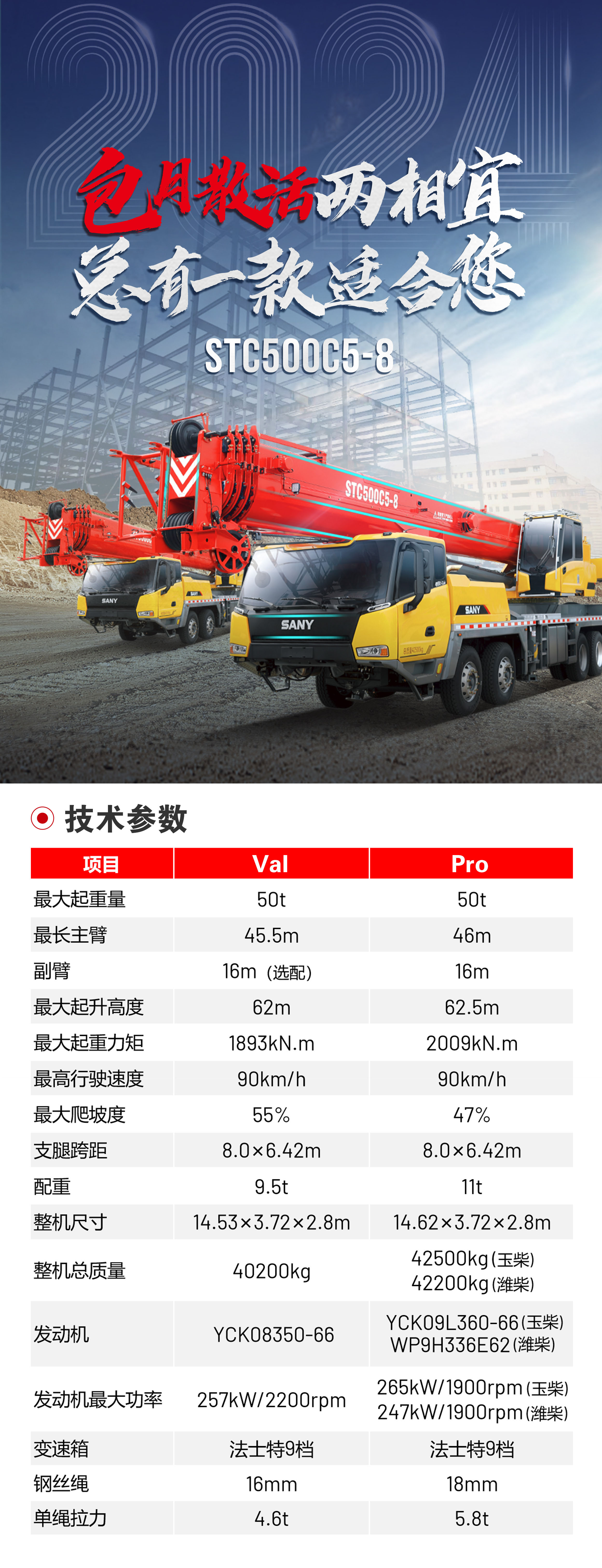 最大吊装幅度:38m (Val)、 40m(Pro )